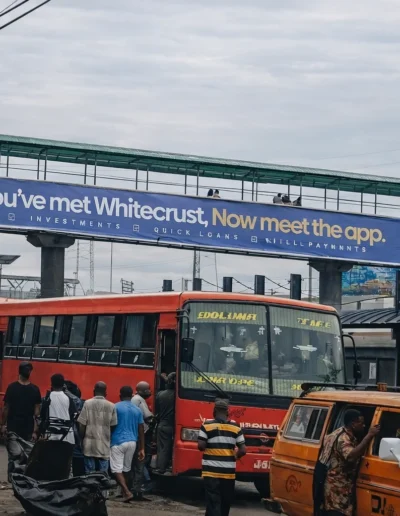 A City That Never Waits is a photographic series that explores the urgency of everyday life in Lagos through the movements of its commuters. The images focus on moments where people jump onto moving buses, cling to doorways, and compete for access to public transport—gestures that reveal how time, survival, and mobility intersect in the city.