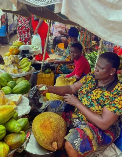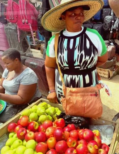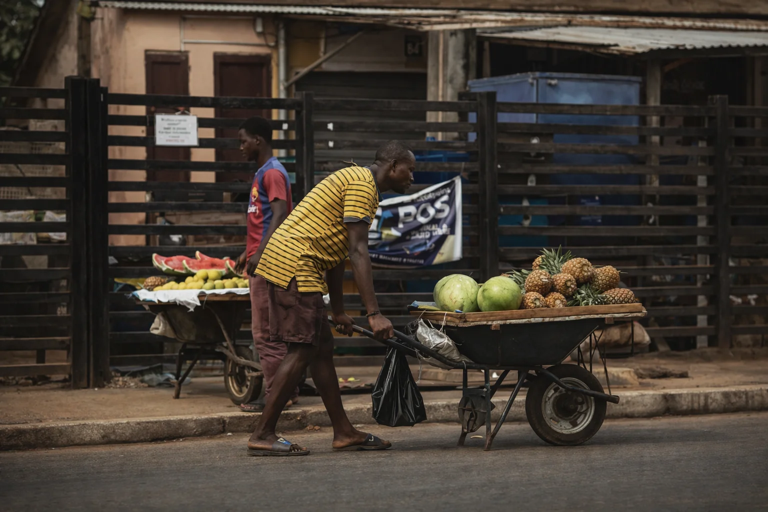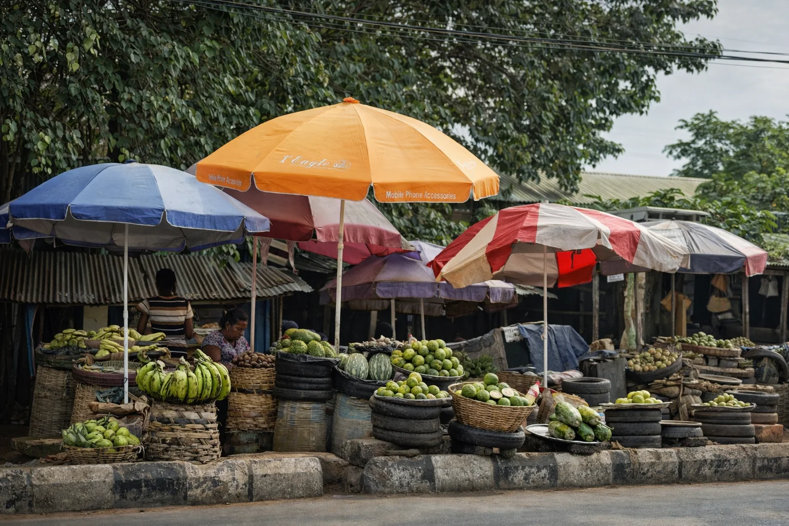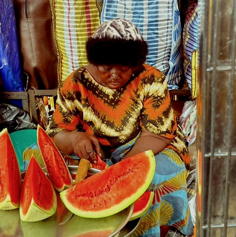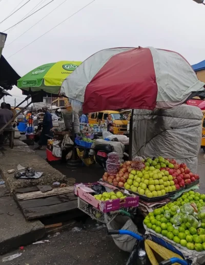 The Trade of Fruit is a photographic series that examines how fruit is displayed, carried, and exchanged across roadside and market settings in Nigeria. The work focuses on fruit trading as a lived system of labour—one shaped by movement, negotiation, and everyday decision-making.